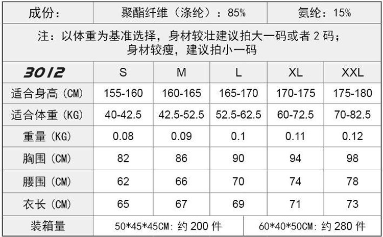 成份:絳綸(常用運動面料) 氨綸(彈性纖維)