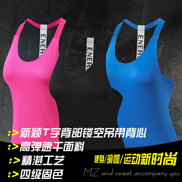 T字背部鏤空吊帶運動休閑背心瑜伽健身跑步背心跨境電商