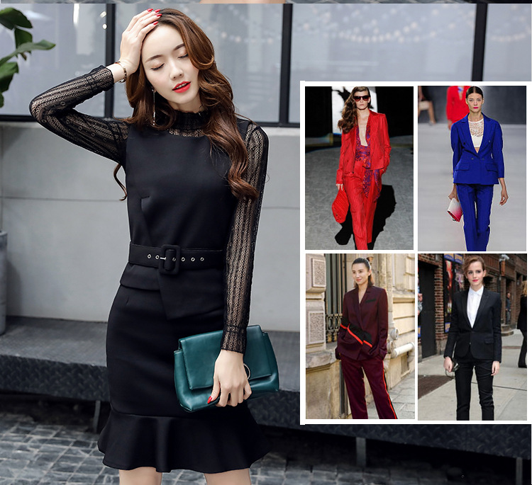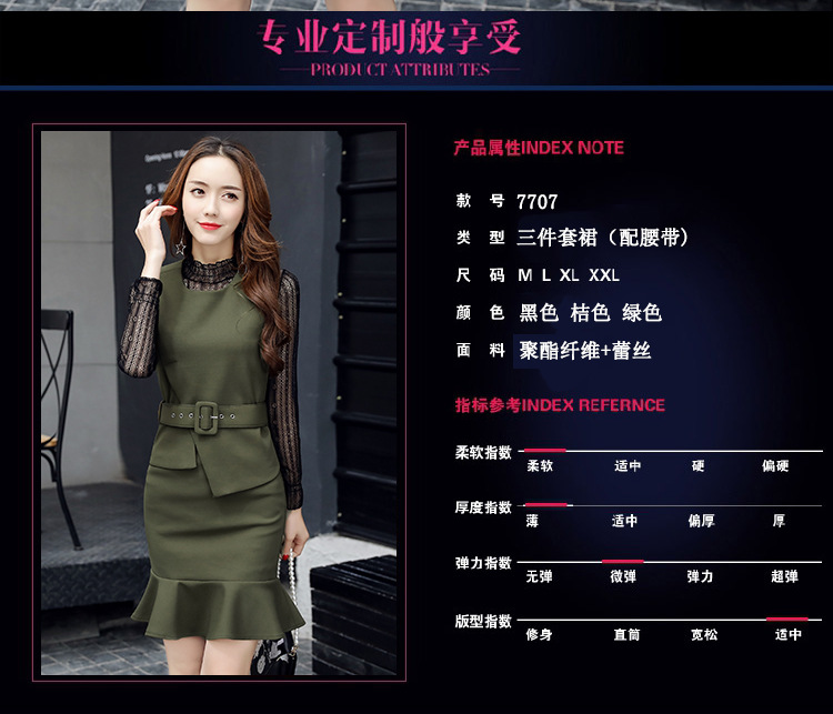 2018春季新品圓領長袖蕾絲衫短裙三件套包臀顯瘦時尚套裝 潮實拍