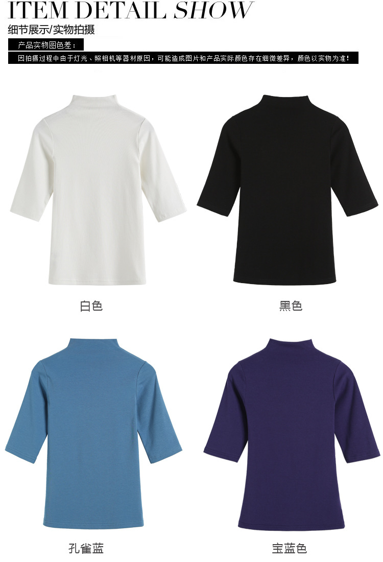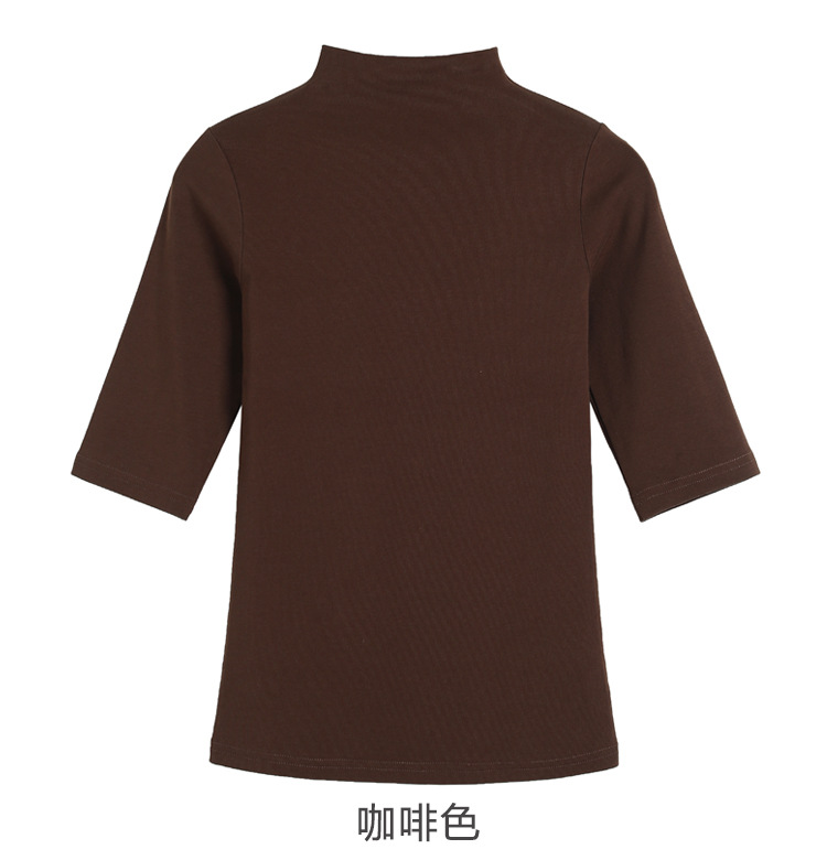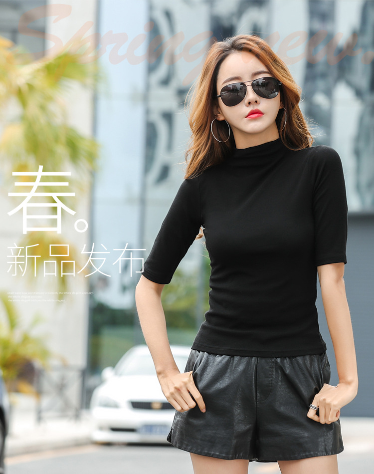 228 春季中袖打底T恤女2019新款修身潮牌半高領顯瘦體恤女