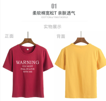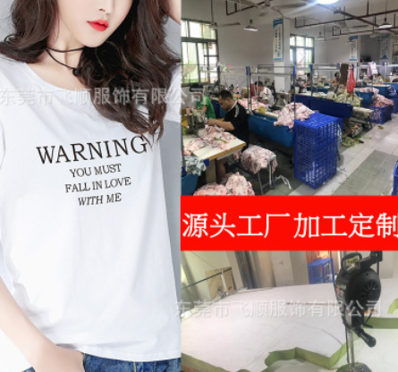 短袖t恤加工女2019秋季新款韓版寬松休閑卡通印花中長款定制女裝