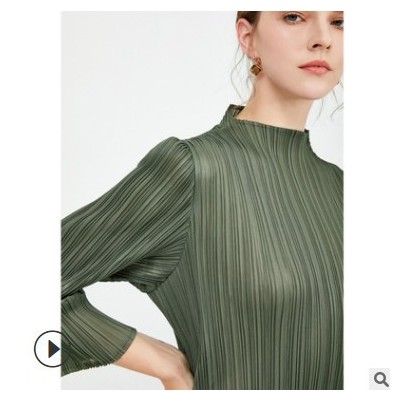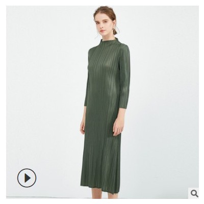 新款熱賣褶皺女裝舒適柔軟連衣裙女中長款修身A字裙長袖連衣裙女