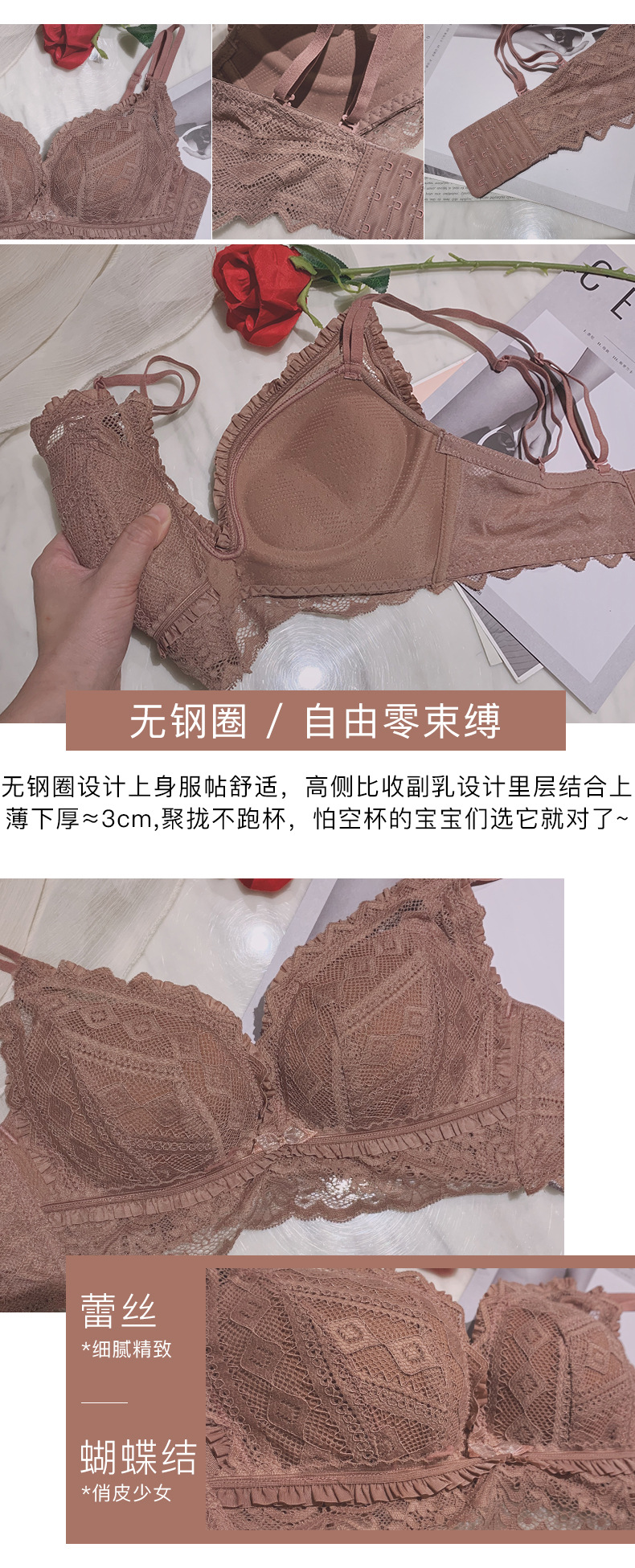 2020新款內衣少女小胸聚攏加厚款無鋼圈性感文胸收副乳調整型胸罩