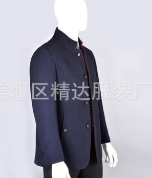 秋冬大衣中山領時尚休閑男士短款毛呢大衣爸爸裝呢子大衣商務外套