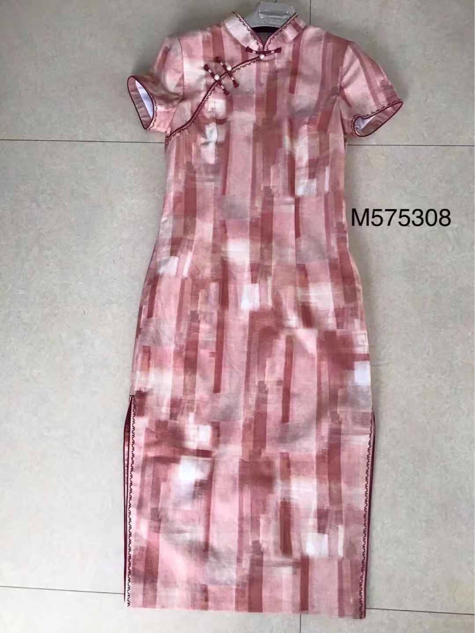 2020夏季新款苧麻雙層短袖中長款修身立領手工旗袍
