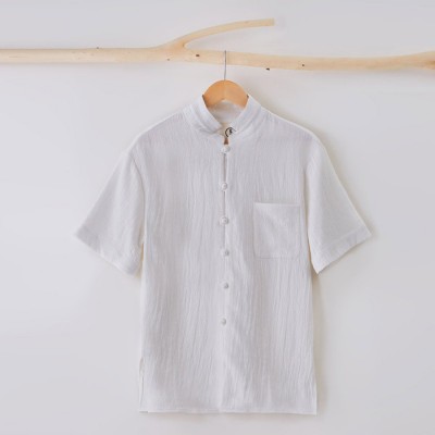 宸賢夏季新款休閑男襯衫亞麻男式襯衫青年唐裝男短袖上衣,天然棉手感舒適,棉纖維間隙較大,透氣,吸濕能力較好