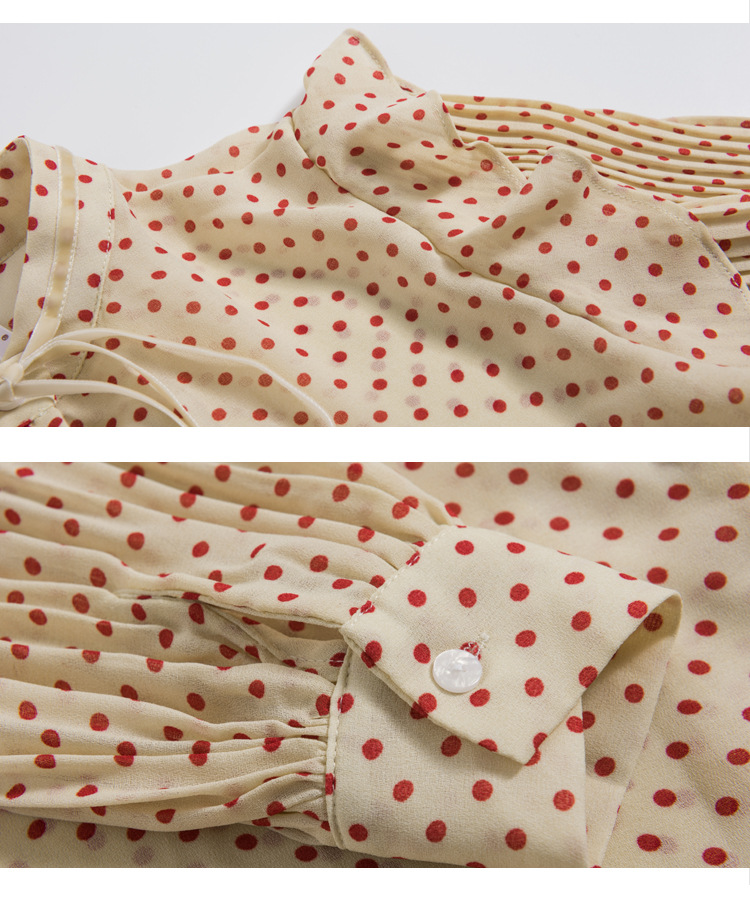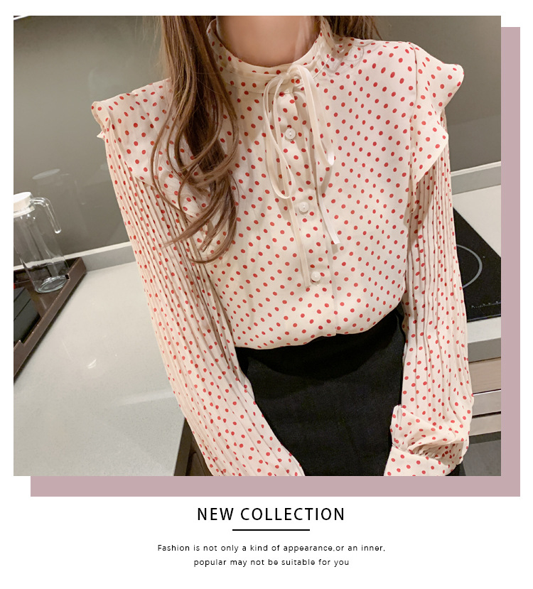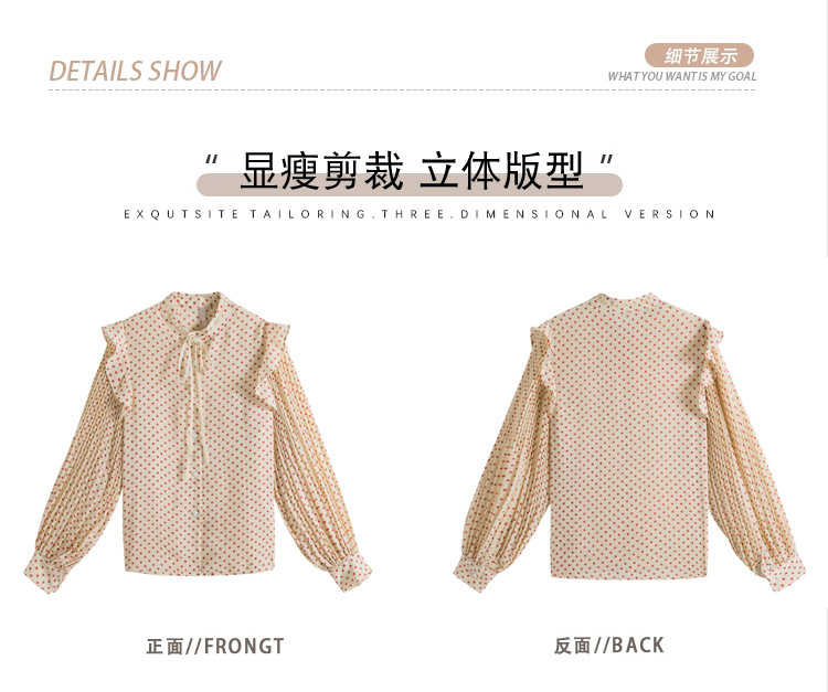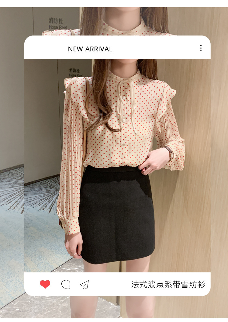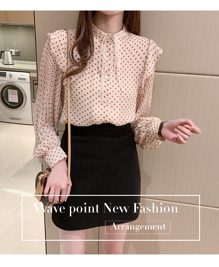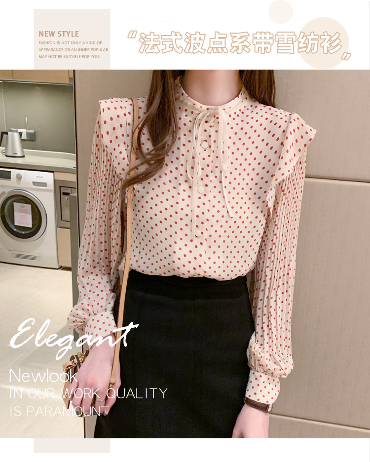 實拍春季新款2021韓版氣質波點印花長袖雪紡襯衫女上衣春