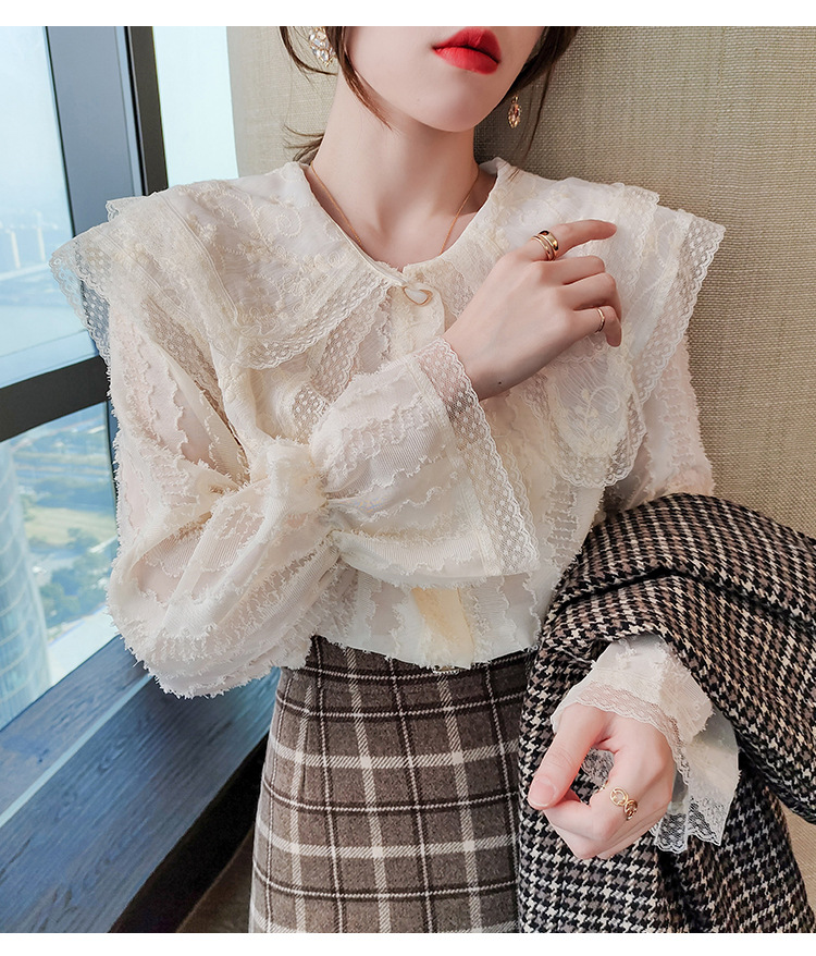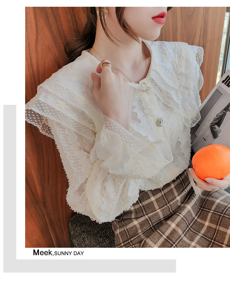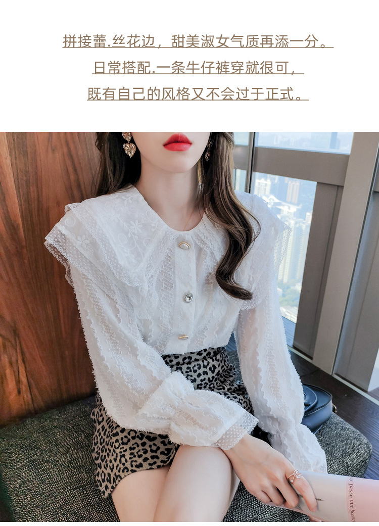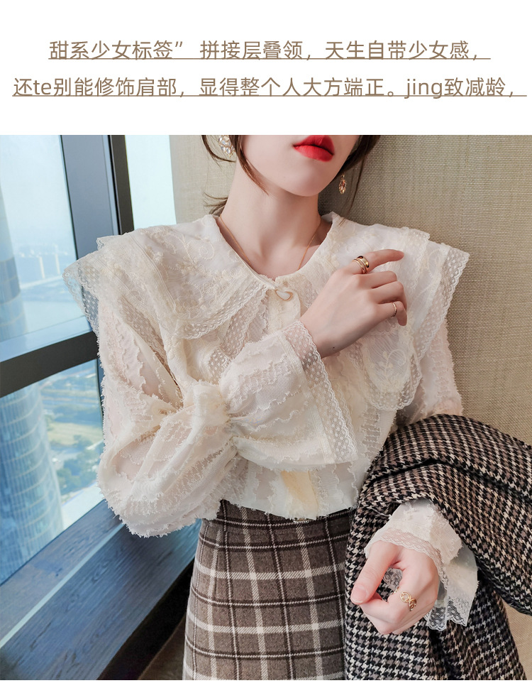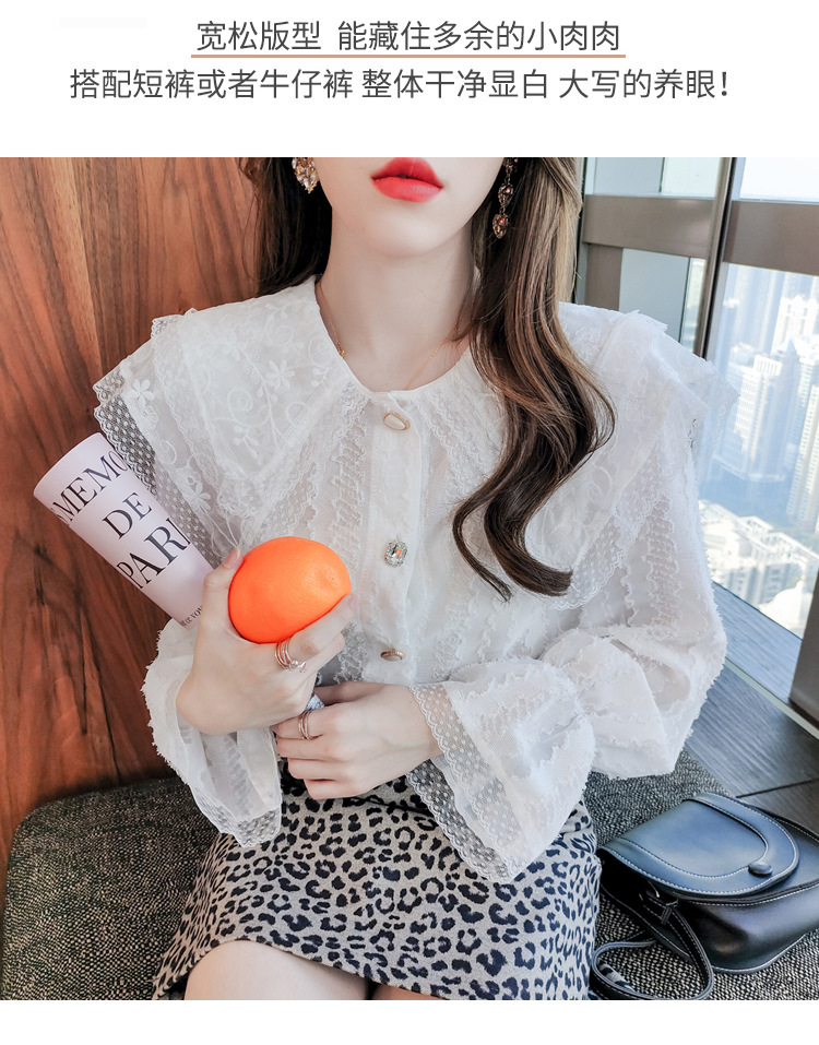 實拍2021早春新款娃娃領千搭蕾絲上衣寬松韓版仙女開衫