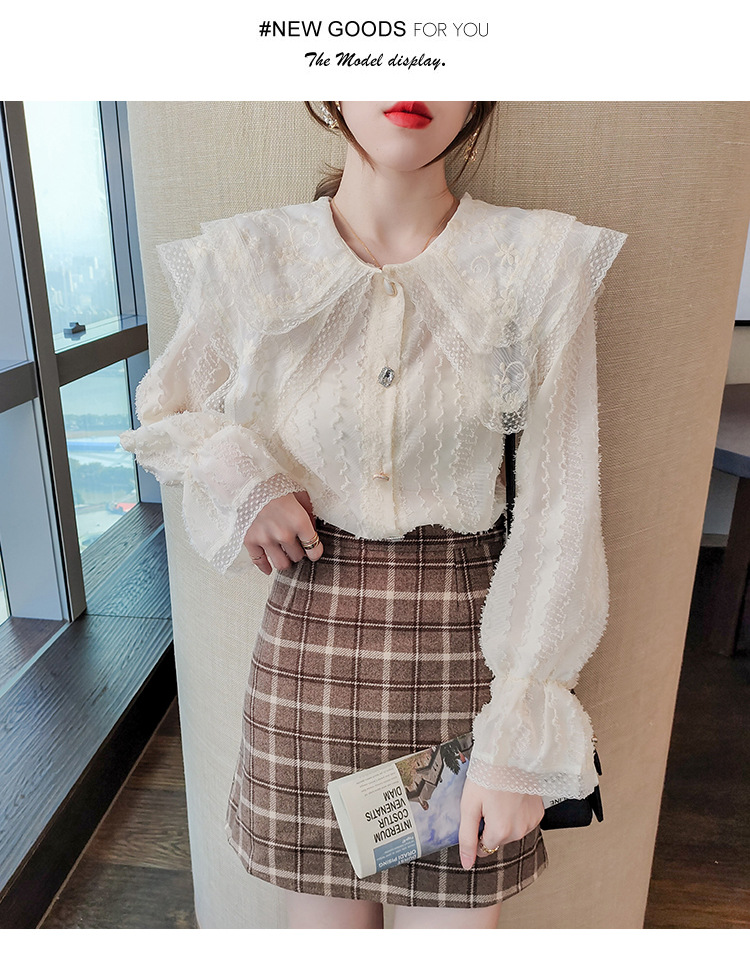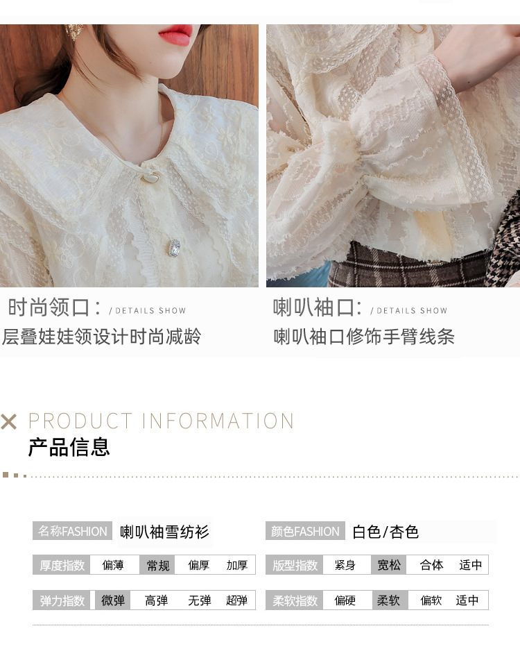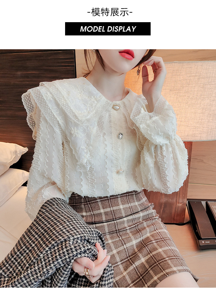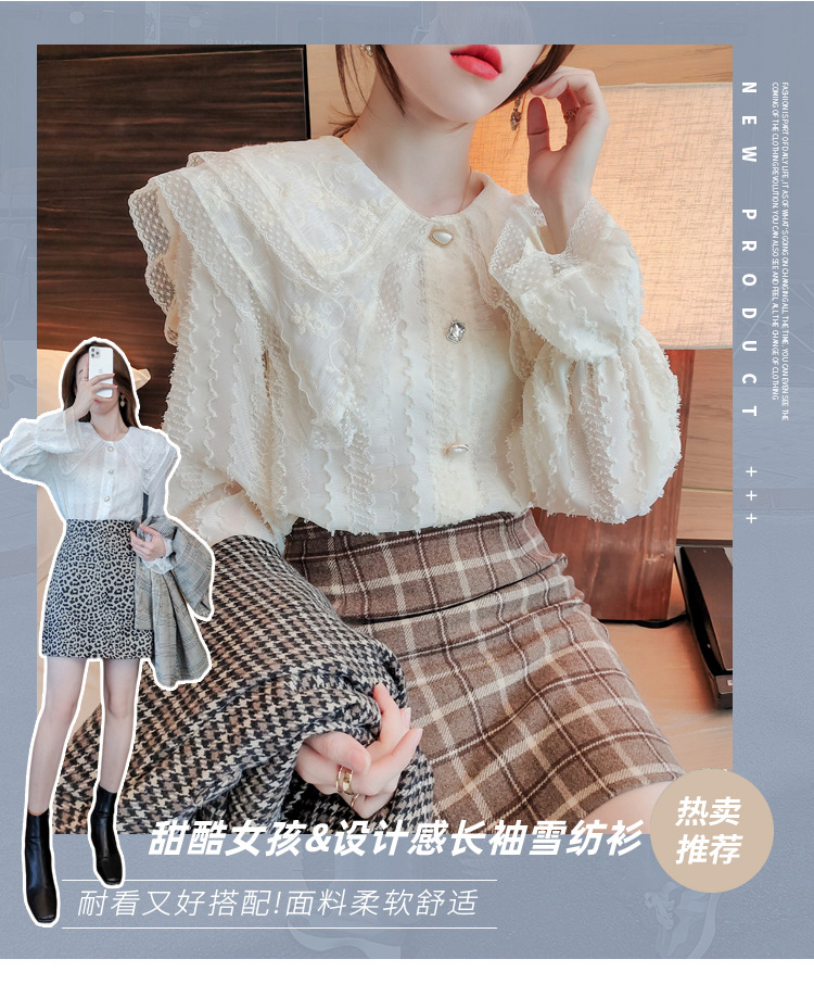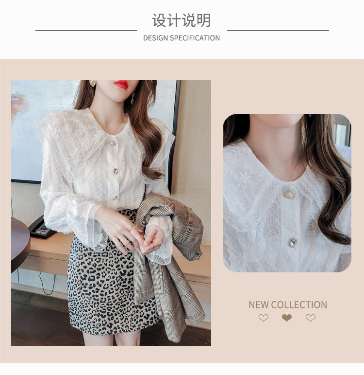 實拍2021早春新款娃娃領千搭蕾絲上衣寬松韓版仙女開衫
