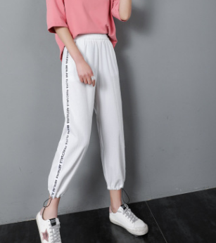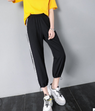 純色ins束腳運(yùn)動(dòng)褲女夏裝2019新款韓版寬松原宿bf百搭休閑直筒褲