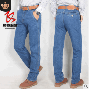 時尚男裝牛仔褲男加大直筒寬松中老年高腰四季純棉經(jīng)典牛仔褲