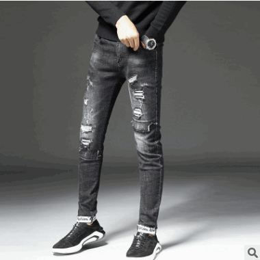 秋季破洞牛仔褲男小腳修身韓版潮流2018秋冬新款百搭彈力男牛仔褲