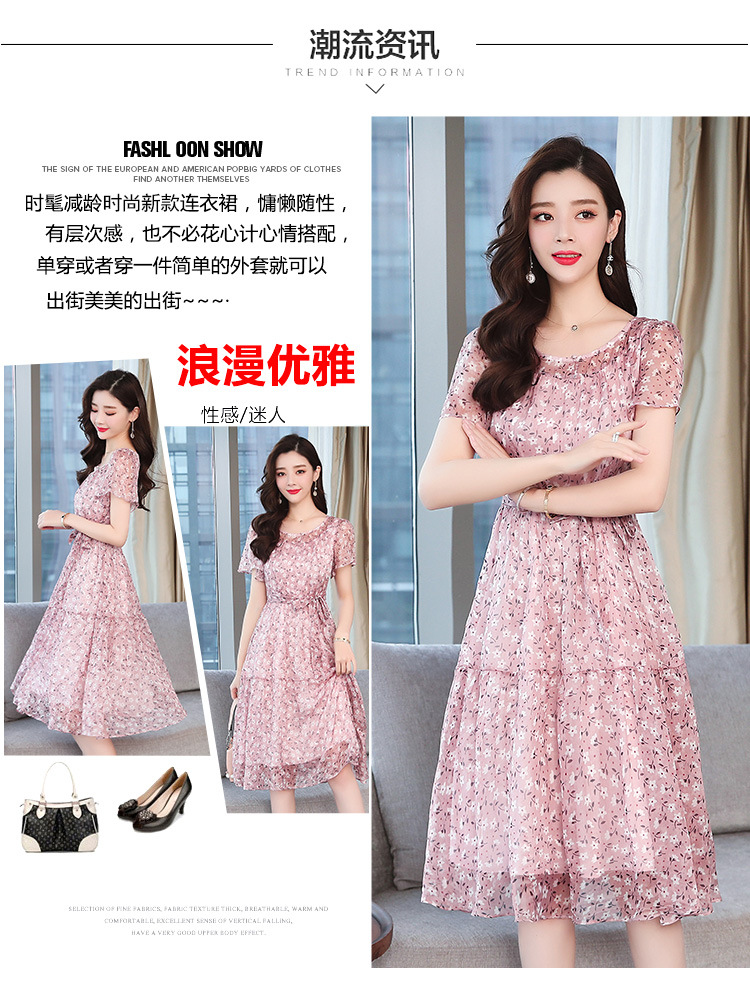 雪紡碎花連衣裙女夏季新款韓版修身顯瘦小清新中長款短袖大擺裙子