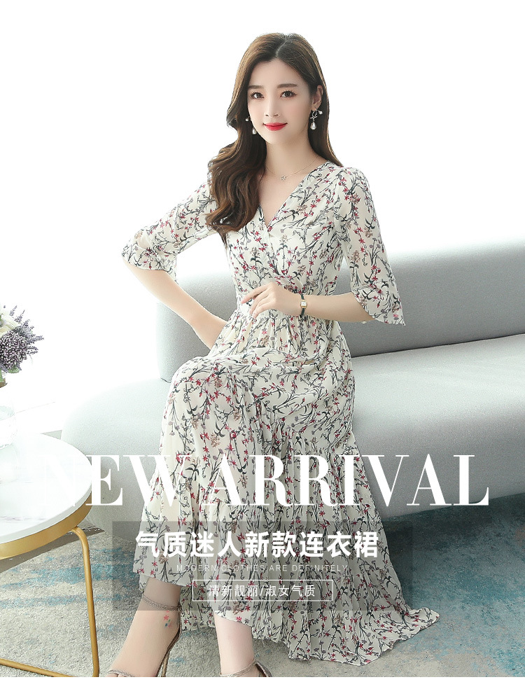 夏季新款女裝韓版收腰顯瘦碎花雪紡氣質裙子超仙女森系短袖連衣裙