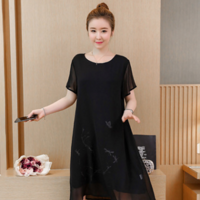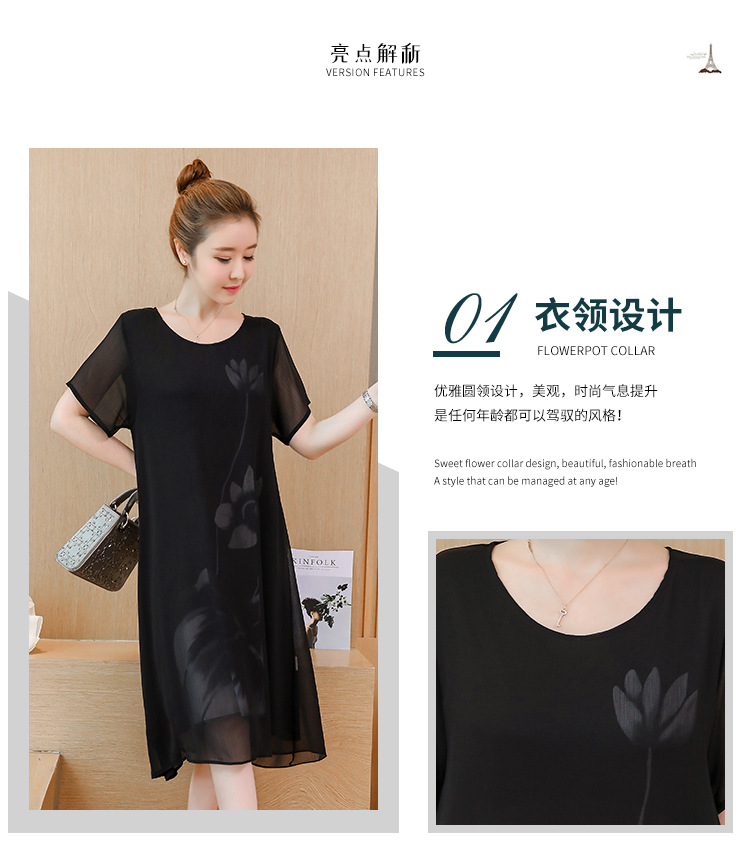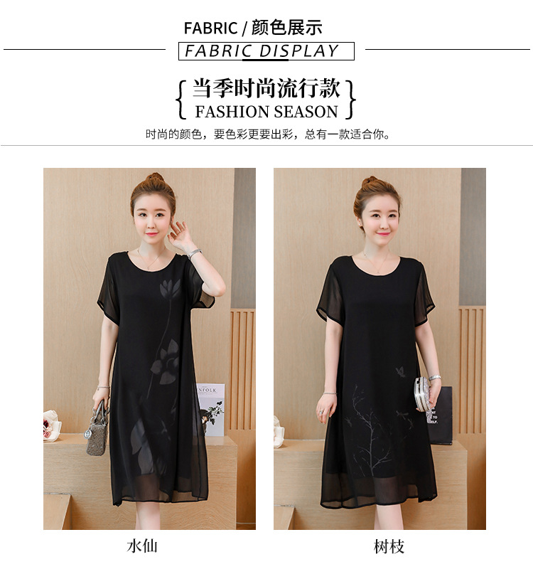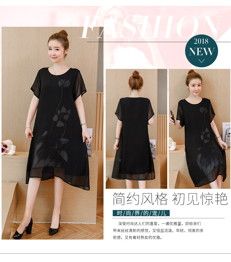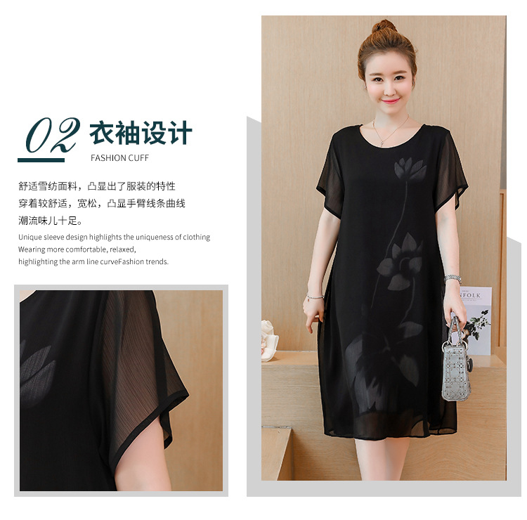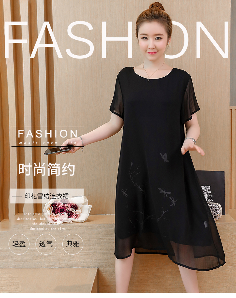 胖MM2019夏款大碼女裝中長款印花雪紡寬松遮肚子大擺裙時尚連衣裙