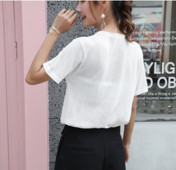 2019夏季韓版刺繡短袖女 時尚百搭字母刺繡T恤套頭上衣 貼牌加工