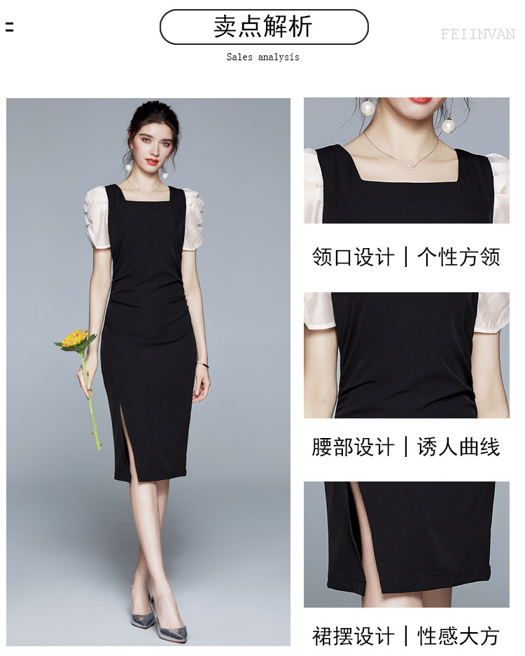 產品: 瀏覽次數:910實拍春夏女裝氣質性感修身純色方領泡泡袖短袖顯瘦中長款連衣裙