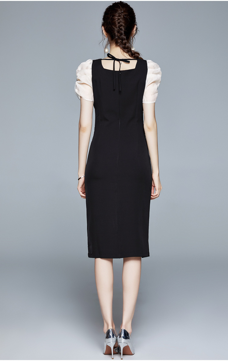 首頁 > 供應產品 > 實拍春夏女裝氣質性感修身純色方領泡泡袖短袖顯瘦中長款連衣裙