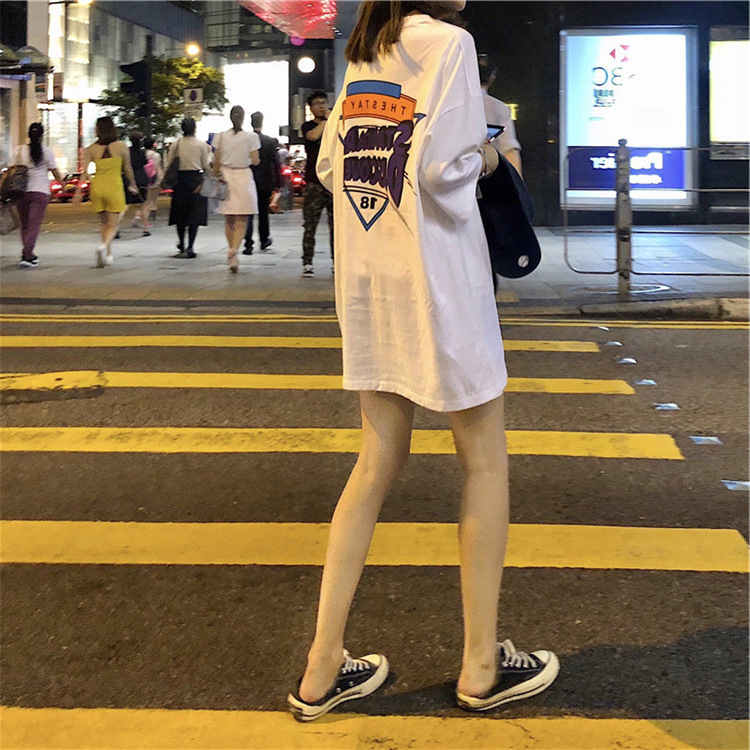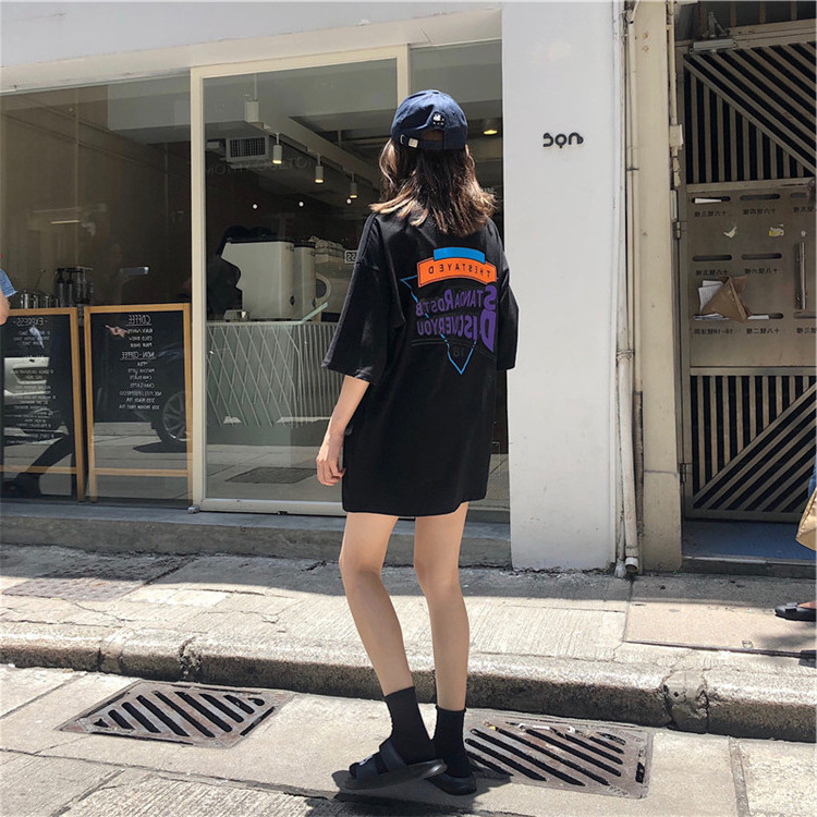 中長款短袖t恤女2020新款韓版百搭嘻哈hiphop少女上衣酷帥氣街頭