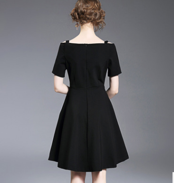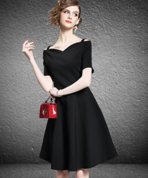 歐洲站春夏新款女裝赫本風收腰露肩一字領連衣裙禮服裙潮加工定做