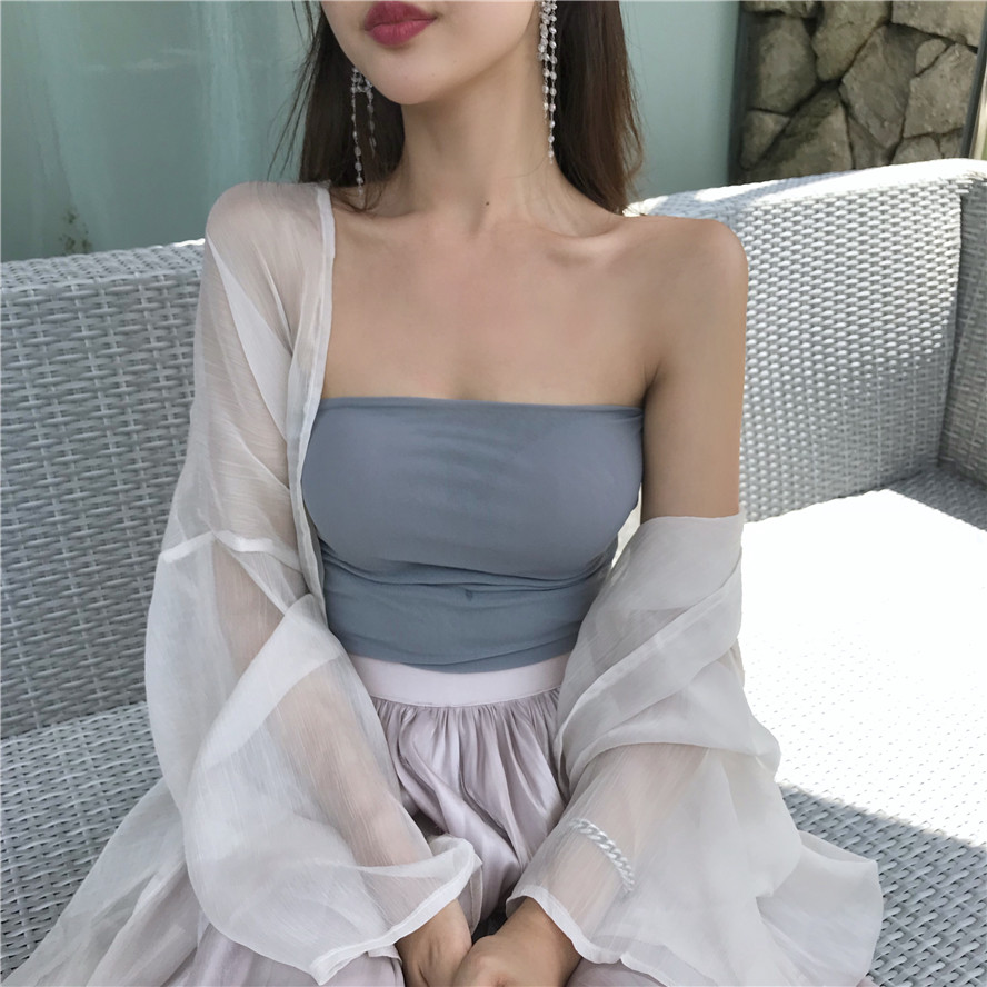 衣服女主播服裝性感夜場露肩小衫純色抹胸吊帶夜店裹胸短上衣245