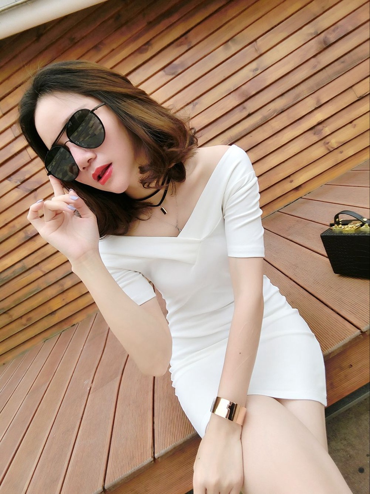 夜場夜店女裝性感連衣裙2018夏季V領條紋包臀低胸露肩短裙309