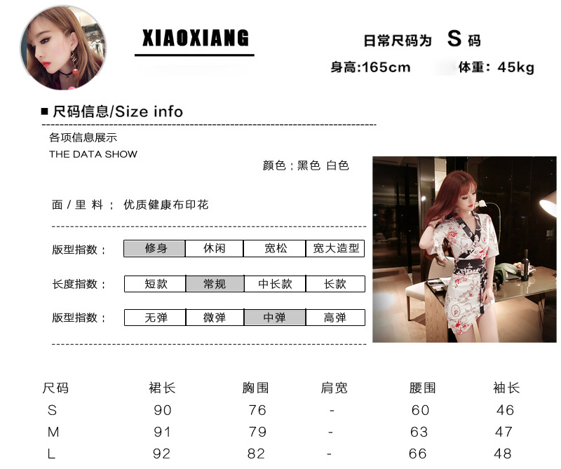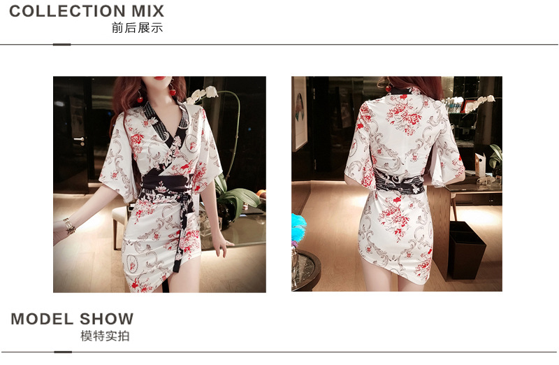 2019夏夜店女裝性感連衣裙V領喇叭短袖包臀和服印花足浴禮服H3634