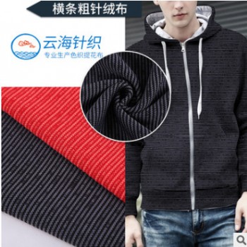 廠家直供 橫條陽離子粗針面料 時尚休閑絨布料 全滌針織運動面料