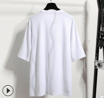 現貨歐洲站19早春新款女閃亮水鉆 海豚印花圖案寬松純棉短袖T恤