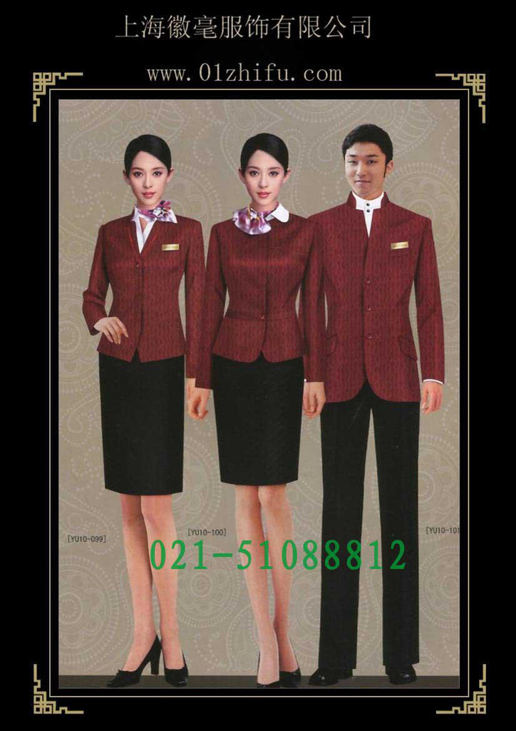 酒店職業(yè)裝工作服,餐廳服務員服裝,前臺收銀服裝 上海徽毫服飾有限公司依靠精湛的技術,先進的設備,嚴格的管理。周到的售后服務,為廠礦,銀行,酒店,學校,醫(yī)院,企業(yè)集團等單位和集體承制了一系列的職業(yè)服裝。以穩(wěn)定的產品質量,快捷的配送支持,精細的制作工藝,周到的客戶服務,準確的交貨時間,贏取廣大客戶的支持與信賴。