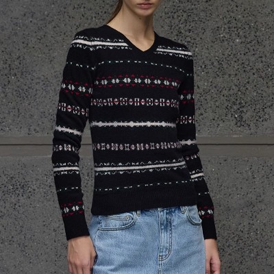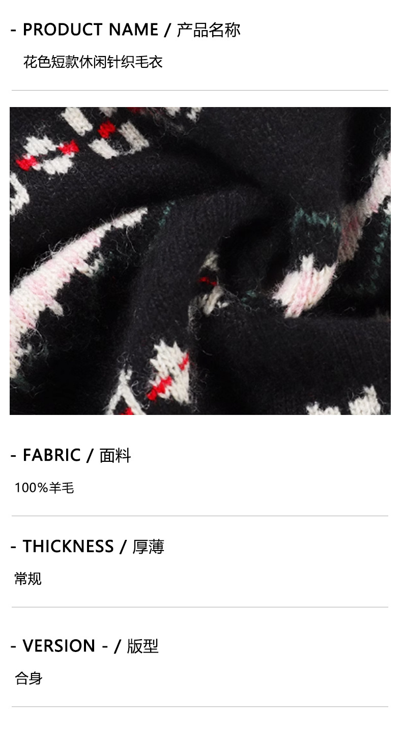 2024冬季新款小香風羊毛V領/圓領套頭長袖毛衣秋冬撞色花針織毛衣