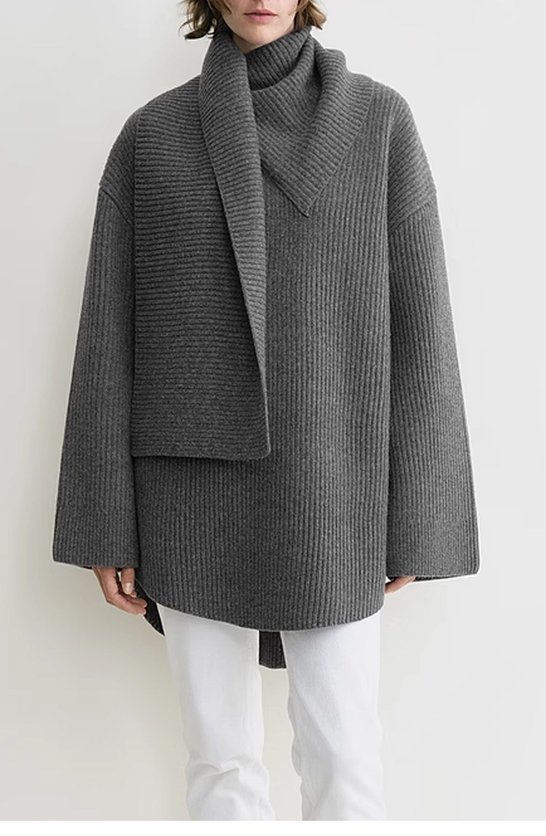 秋冬新款羊毛針織衫粗羅紋長款圍巾針織衫毛衣簡約純色針織衫