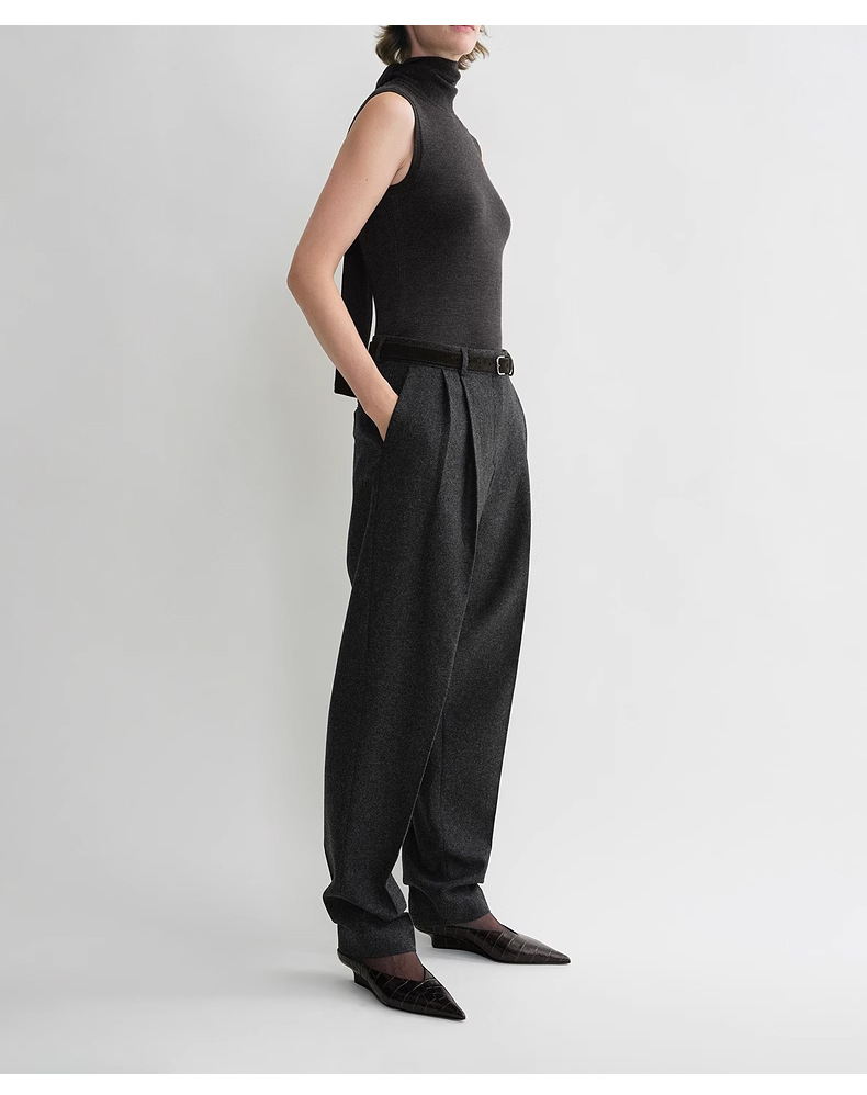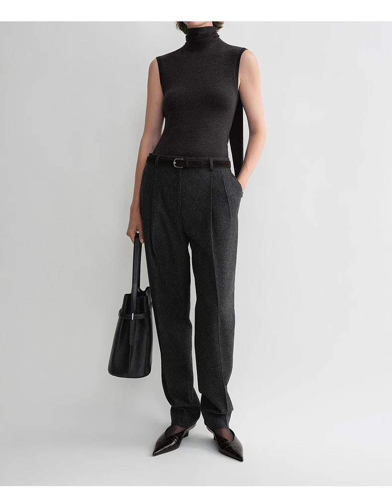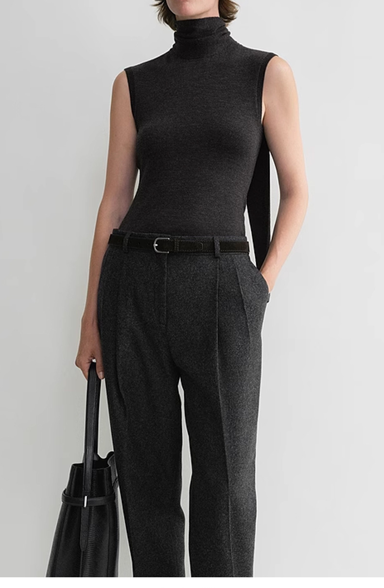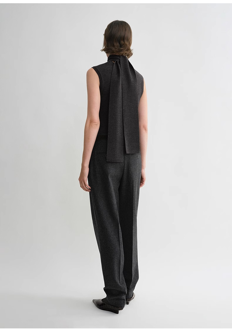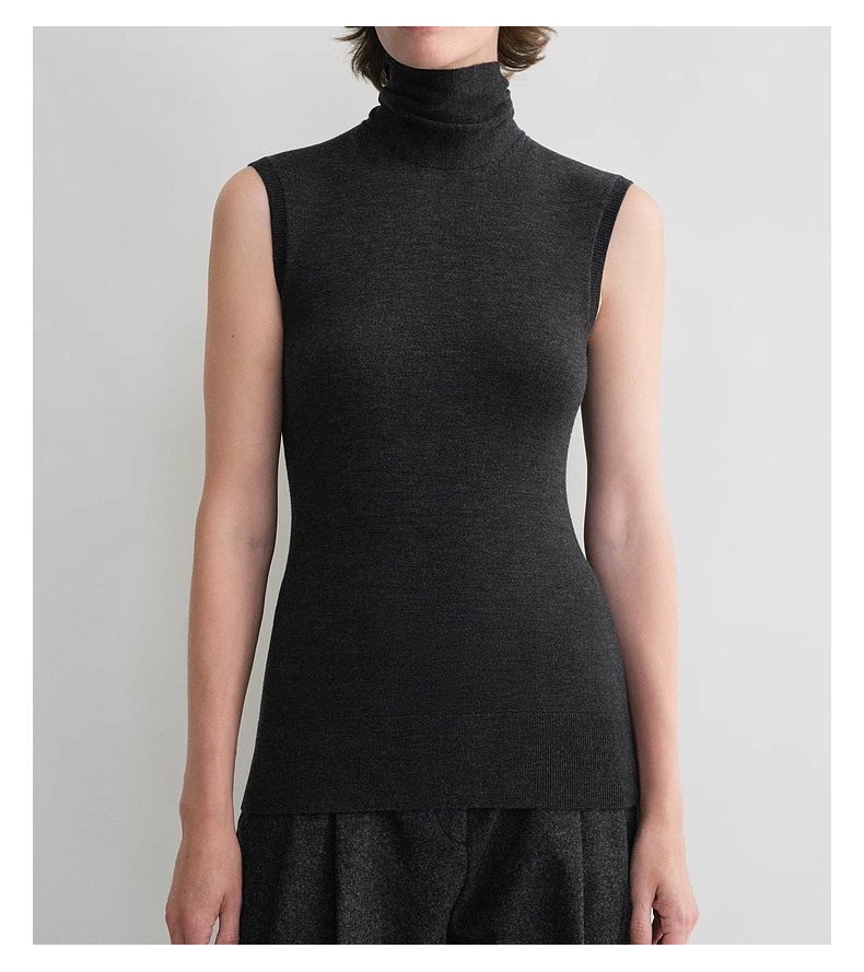25早春新款女裝深麻灰色高級感修身無袖圍巾式修身羊毛針織馬甲