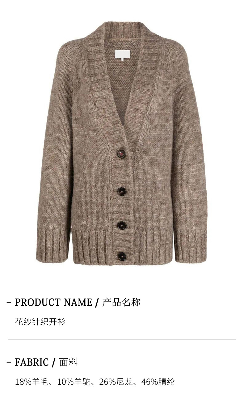 冬季時尚V領百搭針織開衫咖色寬松長袖上衣花紗中長款外套女現貨