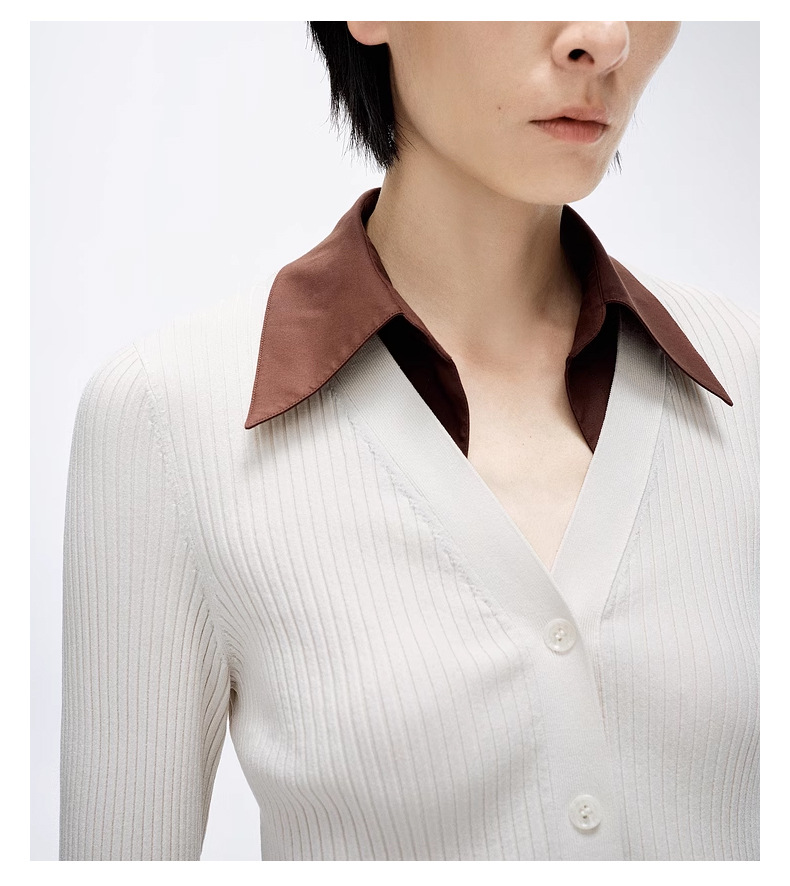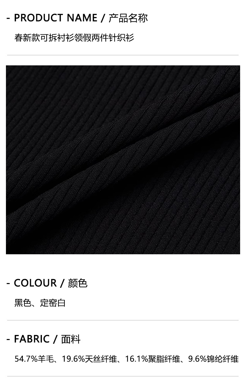 針織開衫女2024春新款時尚修身顯瘦可拆襯衫領(lǐng)假兩件針織衫女裝