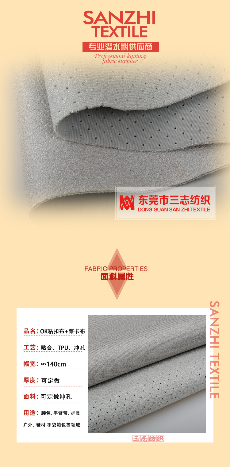 廠家訂做TPU萊卡復合OK粘扣布 運動護具腰包沖孔透氣環保貼合面料