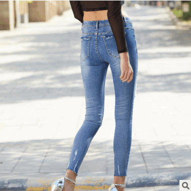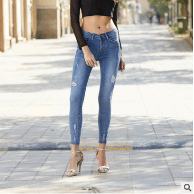 歐洲站女裝歐美2016新款女式彈力破洞牛仔褲長褲女褲外貿原單批發