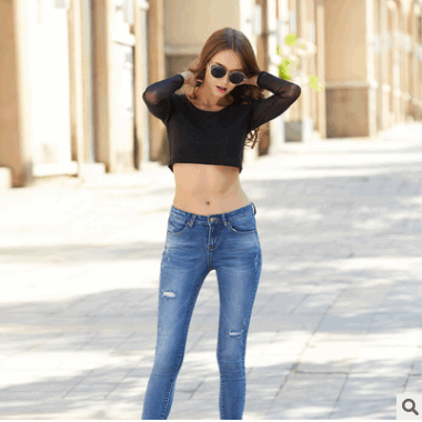 秋冬新款女式牛仔褲鉛筆褲 韓版彈力顯瘦中腰小腳長褲 一件代發