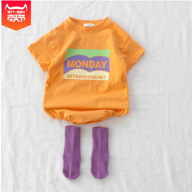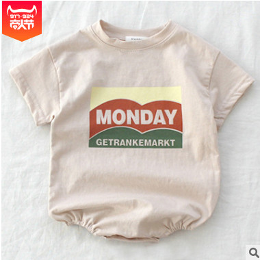 2019韓版嬰兒夏季簡單休閑短袖連體衣包屁T恤男女寶寶MONDAY爬服