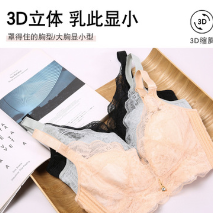 性感超薄無鋼圈內衣女夏薄款小胸聚攏文胸收副乳蕾絲大胸顯小胸罩