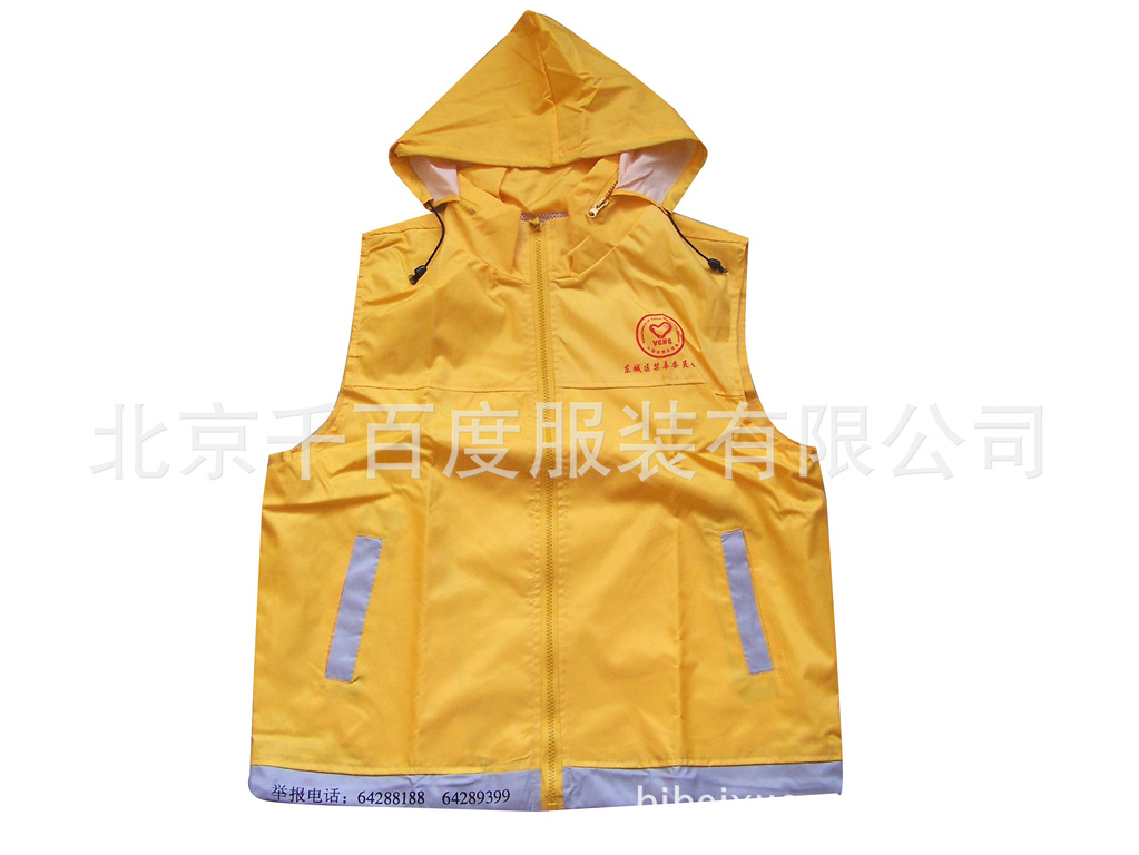 公司專業供應各種**馬甲,棉衣,絨衣帽衫,夾克衫,T恤衫,廣告衫,棒球帽等,面料齊全,做工精細,可根據客戶要求打樣,并且提供各種印花繡花,送貨上門,公司庫房備有現貨,歡迎來電垂詢:010-64890818 64954116