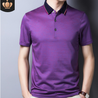 跨境電商桑蠶絲T恤夏季男士商務休閑翻領純色短袖上衣爸爸裝抖音