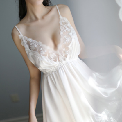 千秀新品情趣內衣刺繡花邊蕾絲誘惑睡裙套裝女式家居睡衣冰絲代發