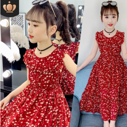 女童夏季新款碎花雪紡連衣裙波西米亞裙泰國三亞度假海灘背心長裙