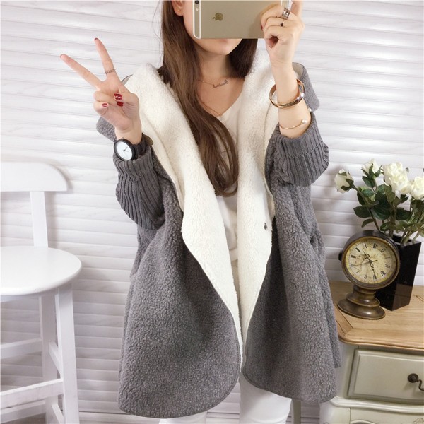 毛衣秋冬裝新款大碼加厚羊羔絨保暖中長款開衫毛衣女外套批發(fā)