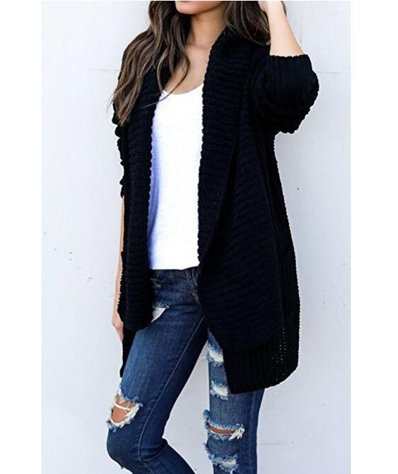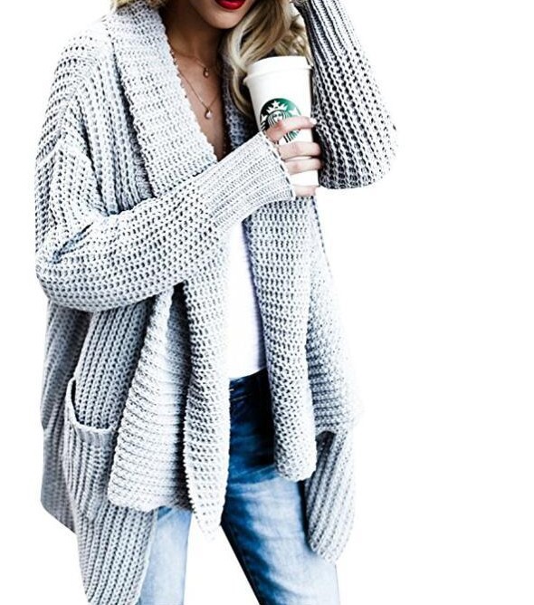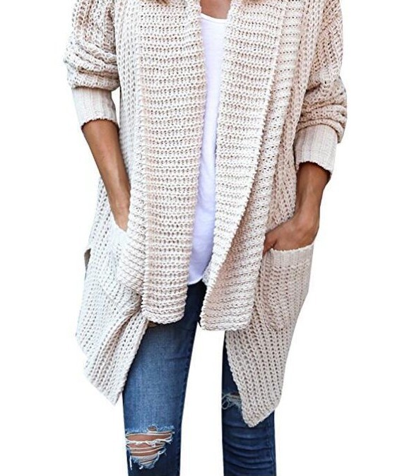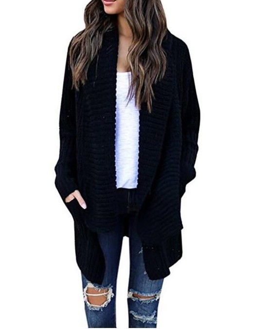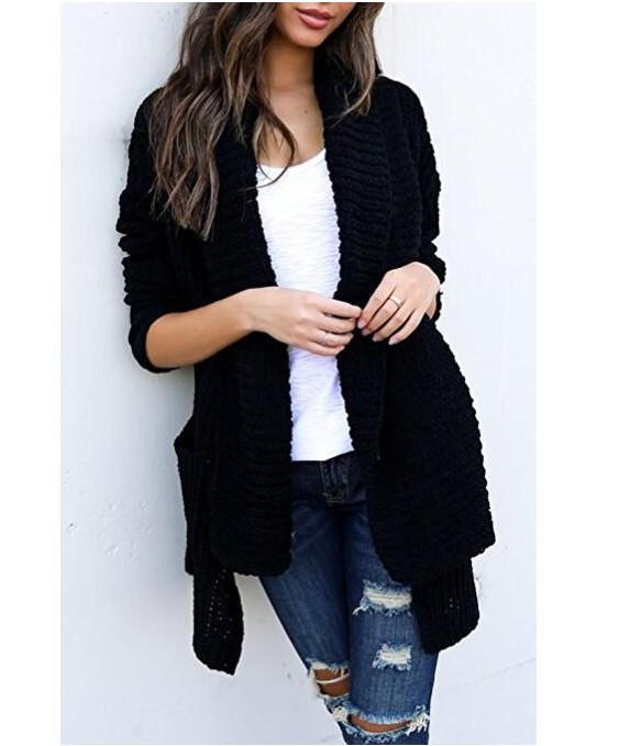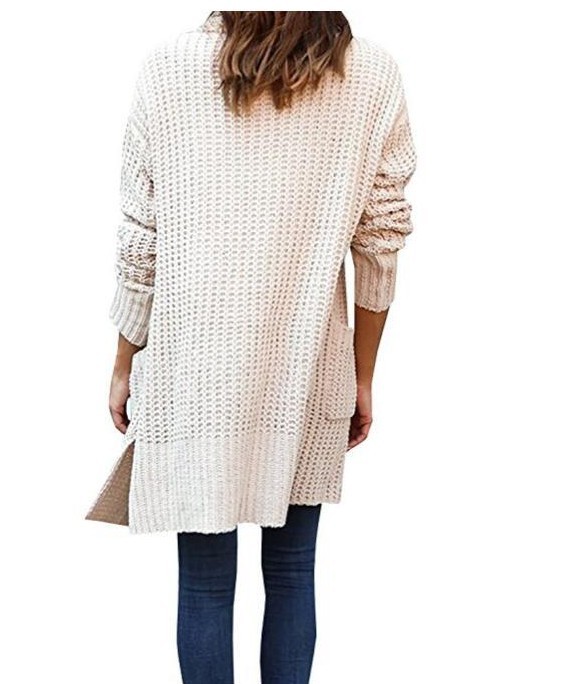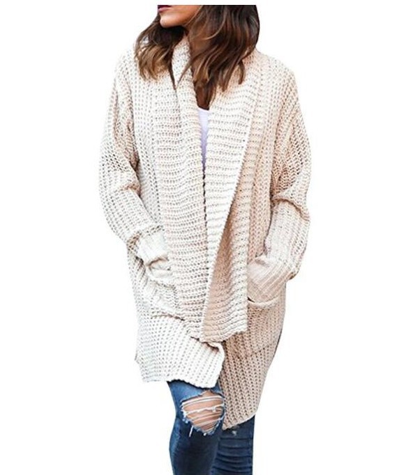2018速賣通wish秋冬新品 歐美寬松長袖多色大碼雙袋開衫毛衣外套