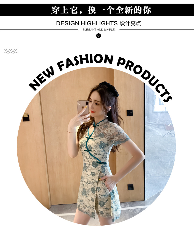 時尚套裝2020夏新款女性感氣質復古改良旗袍蕾絲連衣裙短褲兩件套