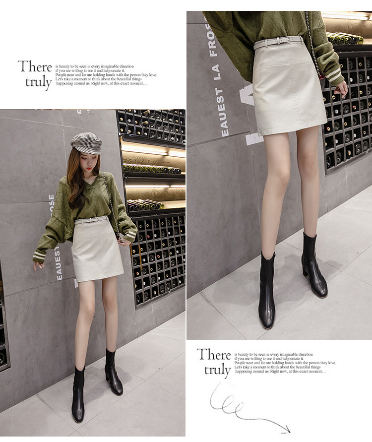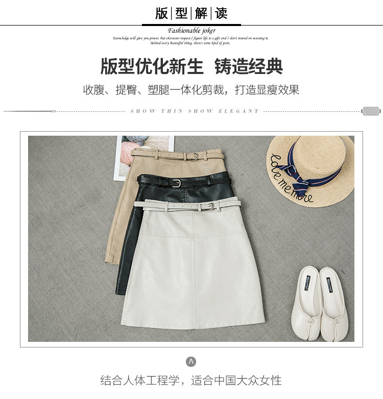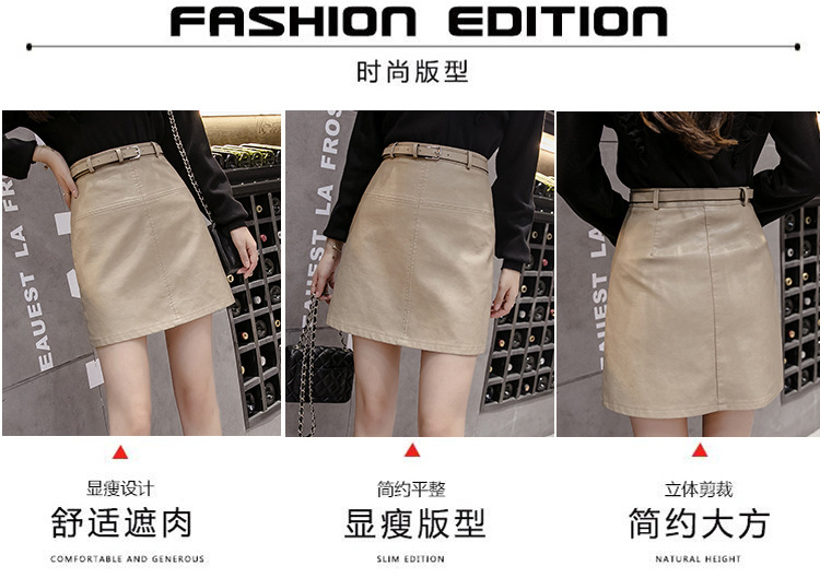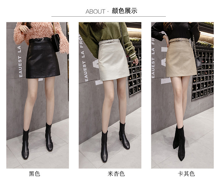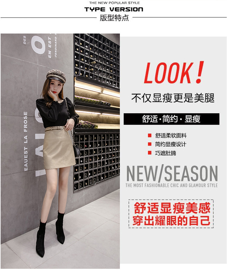 PU小皮裙女2020秋冬新款半身裙超火薄款米色高腰a字裙黑色短裙子