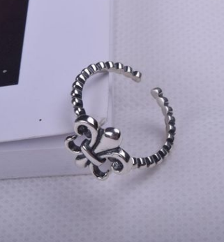 新款韓版925純銀戒指女式手飾品復古克羅花泰銀飾開口戒女生指環