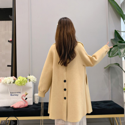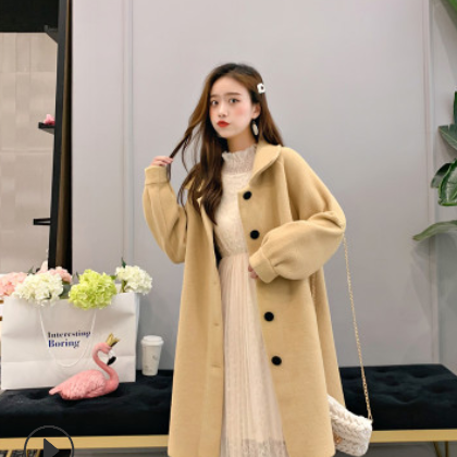 2019秋冬季新款女裝仿雙面呢羊絨大衣寬松翻領(lǐng)時(shí)尚休閑針織外套